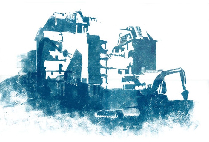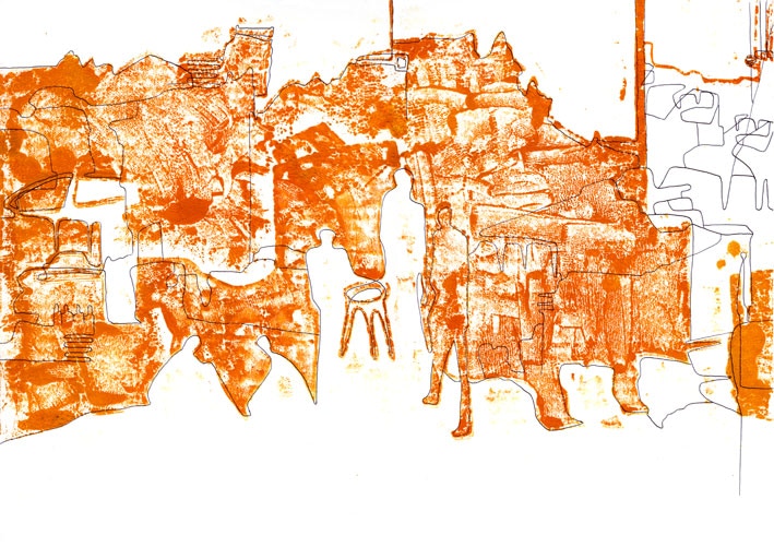 Stadtansichten 13, 2012 ÖL / Linoldruck, 60 x 42 cm